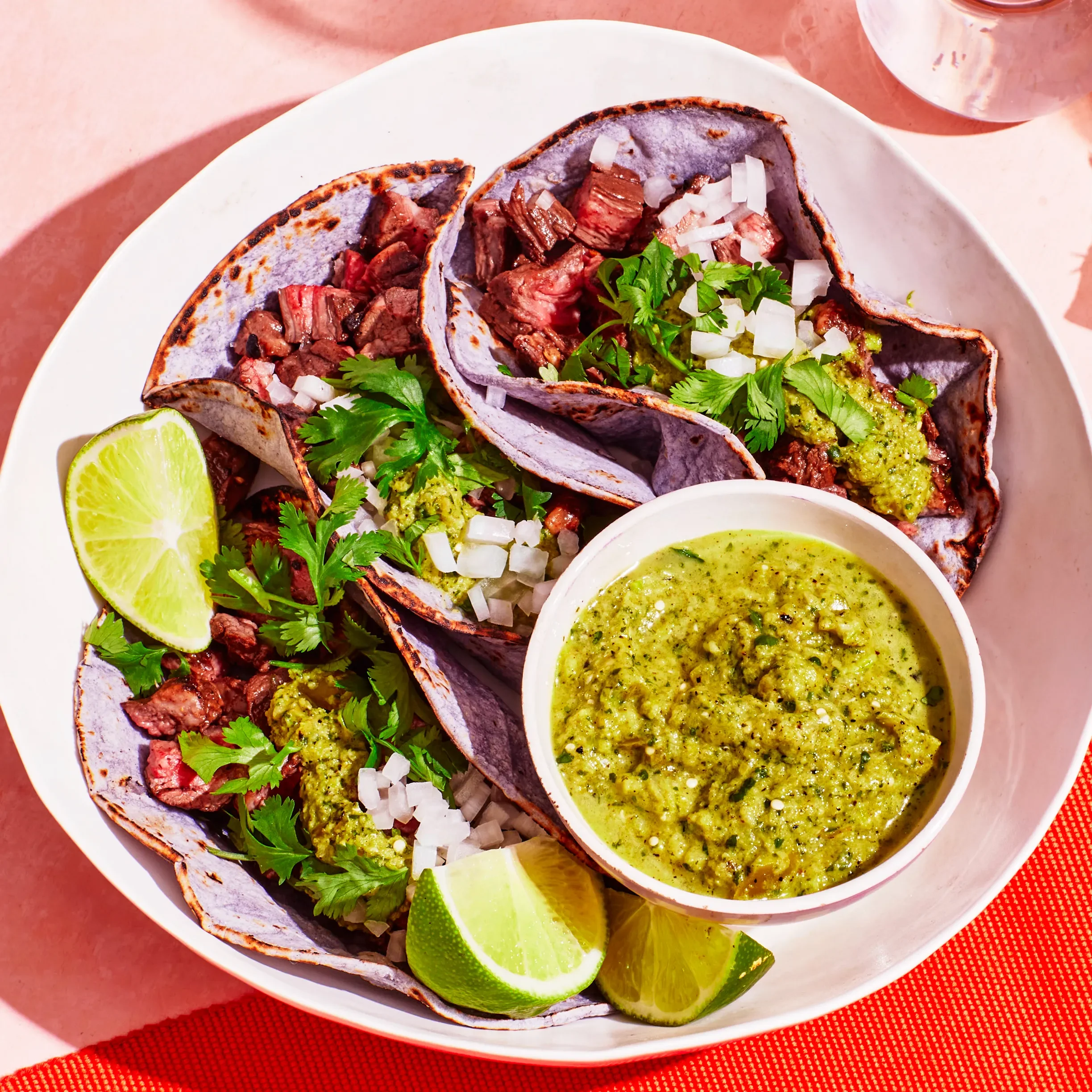 Flame-grilled beef and chicken asado served with fresh corn tortillas and all the traditional fixings: salsa verde, salsa roja, onions, cilantro, avocado, and charred limes. A vibrant and flavorful taco experience made for sharing